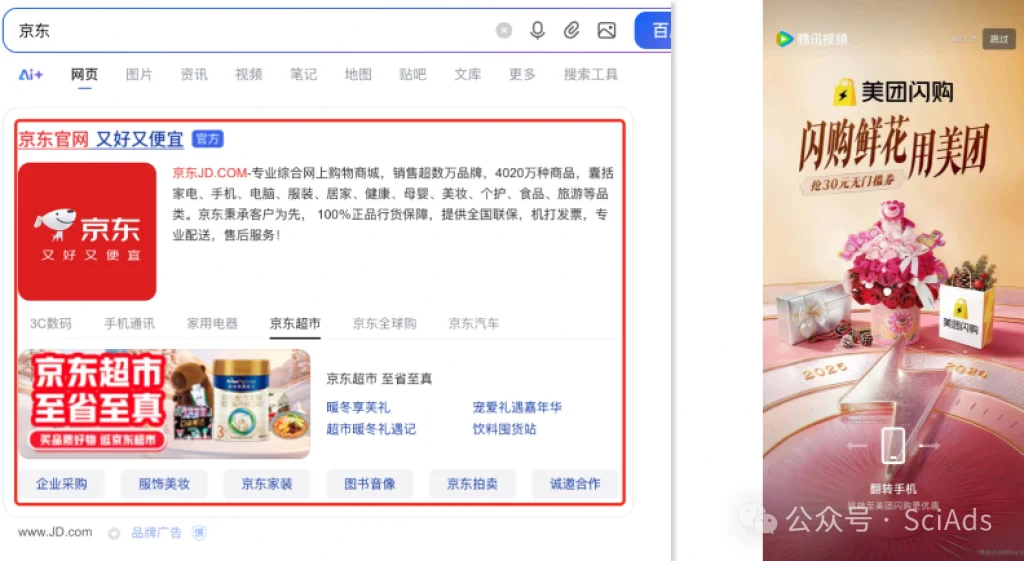 CPT(Cost Per Time):按时间打包卖黄金广告位,典型品牌广告。 线下电梯广告、CBD大屏,线上京东首页、腾讯视频开屏,都是这种。如下图:
